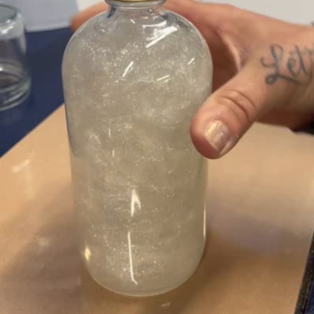 The glitter is FDA approved and remarkably reflective. It stays suspended for a long time thanks to the richness of the simple syrup.